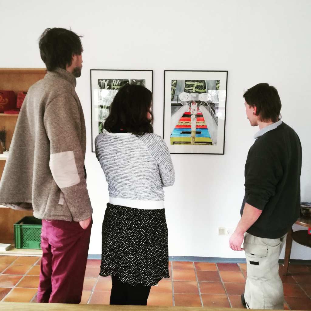 Die Geschäftsstelle lädt Künstlerinnen und Künstler zu temporären Aufenthalten ein, um begonnene Arbeiten zu vertiefen, bereits Vorhandenes zu strukturieren, neue Prozesse zu starten oder die für sie ungewohnte Umgebung in ortsspezifische Arbeiten einzubinden und zu genießen.