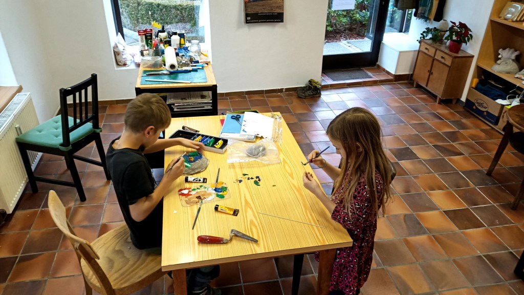 mit Acrylfarben und Pinsel zu experimentieren.