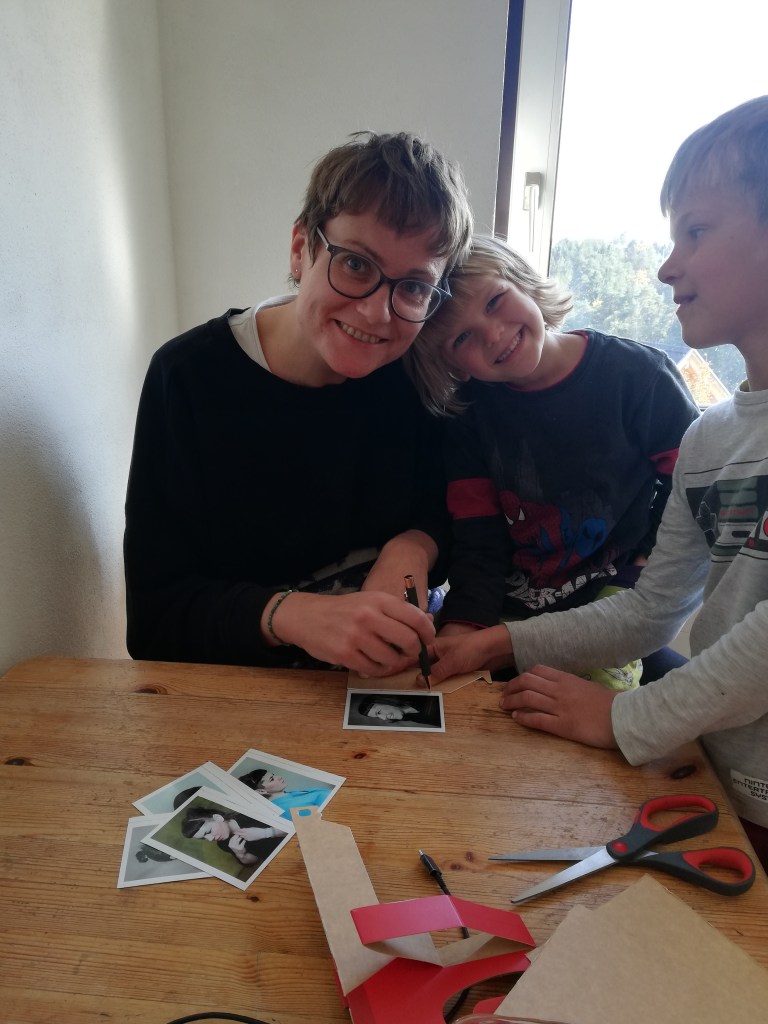 Neben den Portraits hab Maria die Frische genutzt, um neue Hüllen für die Fotos anzufertigen, wobei sie tatkräftig unterstützt wurde.